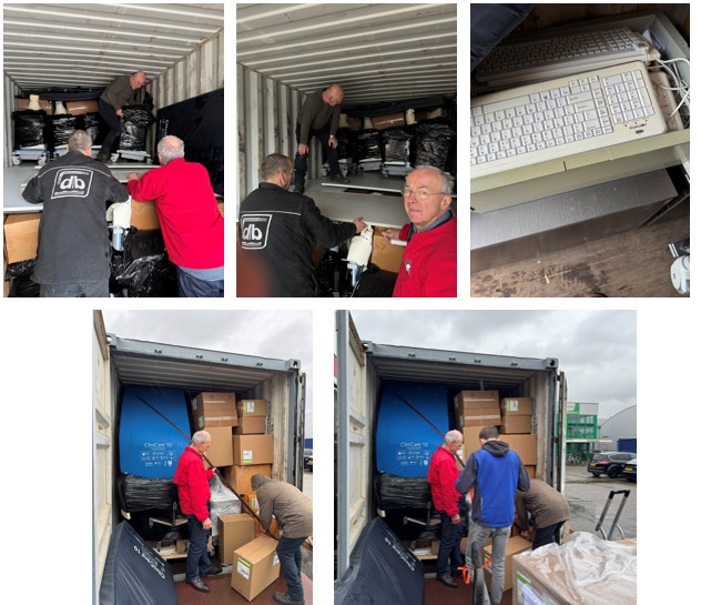 End of 2015 Ricoh SCM bv in Bergen Op Zoom offered to coordinate and organize the transport of all the equipment from the Netherlands to Dar Es Salaam. In February 2016 the goods were transported free of charge by Maas Transport & Expeditie bv from the temporary storage in Oosterbeek to Bergen Op Zoom. Ricoh & DHL carefully wrapped all goods and arranged the transport to Dar es Salaam. The whole transport, including the arrangements with customs in the Netherlands has been paid and arranged by Ricoh SCM bv.